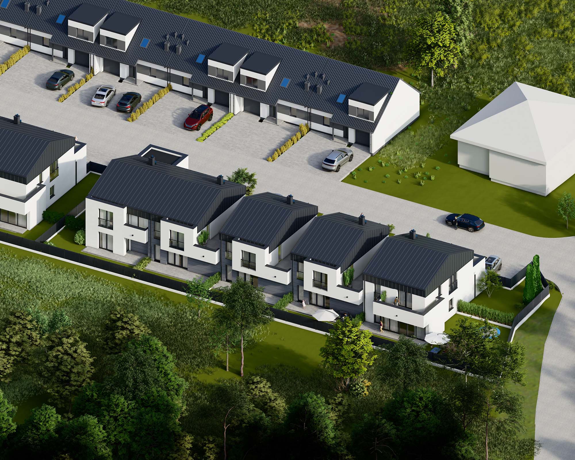 Wszystkie domy wyróżniają się przemyślanym układem pomieszczeń, zapewniającym domownikom przestrzeń do odpoczynku, pracy, nauki czy zabawy. Mają powierzchnię od 51,52 m² do 151,44 m², więc łatwo można znaleźć wariant, który spełni wszystkie potrzeby. Do każdego lokalu przynależy ogródek, umożliwiający komfortowy odpoczynek na świeżym powietrzu. Niektóre domy mają także garaże.
