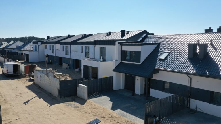 Wszystkie budynki zostały wykonane z wysokiej klasy materiałów w technologii, która gwarantuje oszczędność pod względem eksploatacji. Posiadają przyłącza: gazowe, elektryczne i wody, instalacje alarmowe, telewizyjne, ogrzewanie podłogowe w salonie, przedpokoju a także w łazienkach i kuchniach, wylane posadzki, tynki oraz wykończoną elewację. W budynkach znajduje się także instalacja pod rekuperację, która umożliwia odzysk ciepła i dodatkowe oszczędności w trakcie użytkowania. Są przekazywane przyszłym mieszkańcom w standardzie deweloperskim z pełnym zagospodarowaniem terenu (kostka, ogrodzenie, zagospodarowana zieleń, latarnie w oświetleniu ulicznym i oświetlenie zewnętrzne), a także pozwoleniem na użytkowanie.